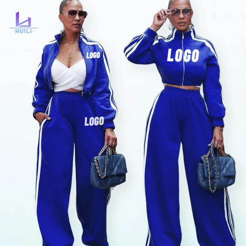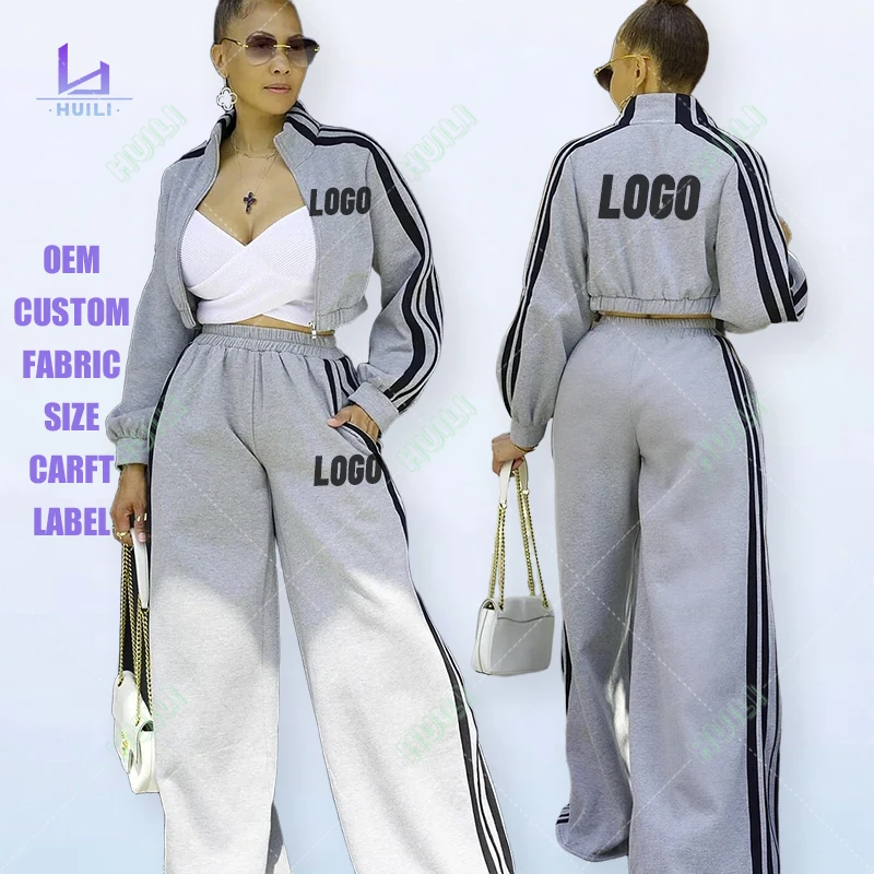 Huili Oem Stand Collar Zip up Cropped Top Jacket & Baggy Sweatpants Manufacturer Tracksuit Custom logo Activewear Sets for Women